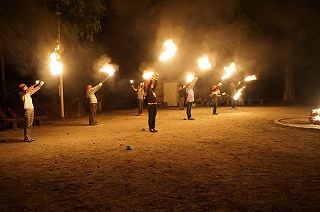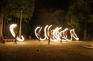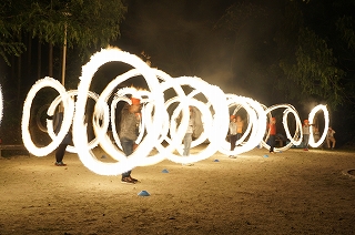 ファイヤーの風景です。途中でザーッと雨が降ってきたため急きょ切り上げましたが、火舞は何とかすべてできました。最後までできなくて心残りでしたが、これも一つの思い出になりました。