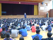 正門から不審者が侵入した想定で、児童たちは先生の指示をしっかりと理解し、体育館に避難することができました。