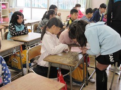 13日の1時間目は通学談会議でした。新しい班のメンバーがそろって行う初めての会です。