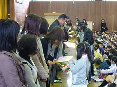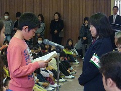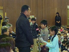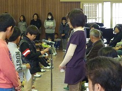 最後に、全校で合唱を行い、代表の子がプレゼントを渡しました。