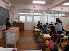 また、5年生を対象に福祉実践教室が開かれました。車椅子・手話・要約筆記・点字・視聴覚障害者ガイドヘルプ・高齢者疑似体験、それぞれのコースに分かれて講師の方からいろいろと教えていただきました。