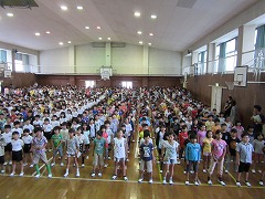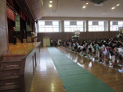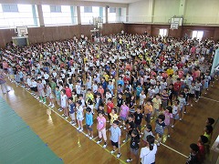 800人を超える子どもたちの声が響く体育館。それだけでも迫力があります。歌詞を覚えてたくさん歌い込めば、もっともっと素敵な集会になりそうです。これからも、朝礼の前に行われる予定の歌声集会です。次の回も楽しみです。