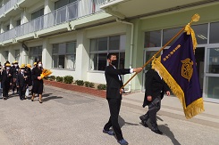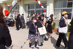 送り出しも穏やかな天気のなか行われました。送り出しでは、保護者の皆さんや教職員の笑顔があふれていました。一人ひとりにとってよい門出となったことをうれしく思います。