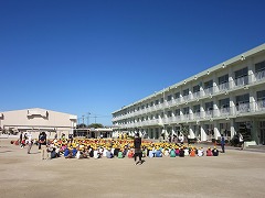 ちょっと優しい色になった南小です。 運動場での朝礼は清々しいです♪