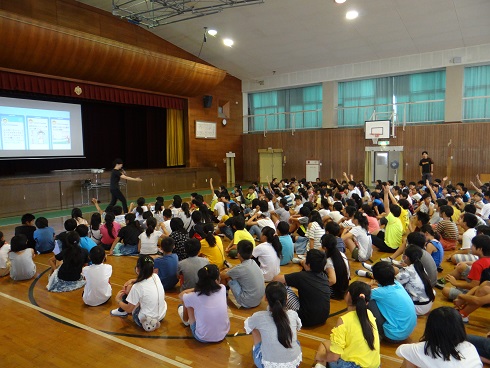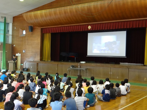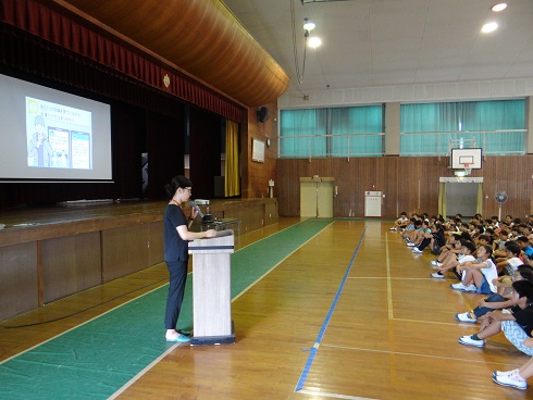 暑い日ではありましたが、体育館で真剣に話を聞くことができました。