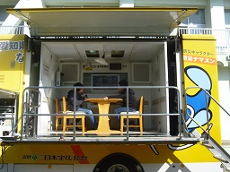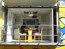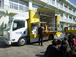 本日、起震車「なまず号」が学校にやってきました。4年生が起震車で地震を体験しました。