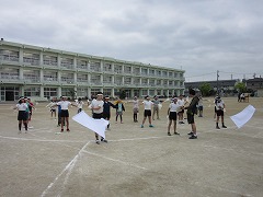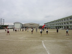 スポーツフェスティバルに向け、運動場で応援団の練習が行われました。今年から紅白対抗になるので、応援団も2つです。