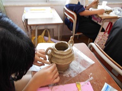 6年生は、粘土で制作活動をしています。社会で身につけた歴史的な知識を作品に