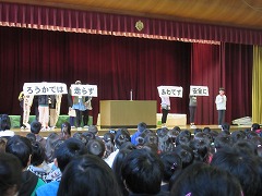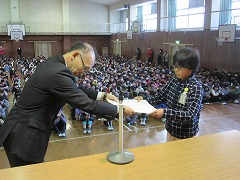 27日の朝礼では、校長先生から学校生活についてのアンケートの結果について教えていただきました。昨年度に比べ、この1年でいやな思いをしたと答えた子が、0ではないですが、ぐ~んと減ったそうです。また、集会などの様子を見ても、この1年間静かに落ち着いてお話が聞け、とってもいいなと感じるそうです。4月からは新しい学年ですね。進級し、よし頑張ろう!と思えるように、あとひと月、しっかり準備をしてください、と話されました。