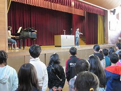 校歌斉唱。指揮、伴奏は児童代表でした。