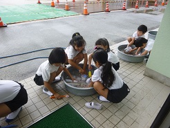 1年生は、生活科の時間に、普段履いている上履きを自分で洗いました。自分でできることがまた一つ増えました。