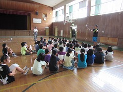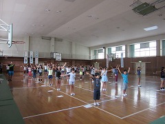 5年生は、9月17日、18日に野外活動を行います。2学期早々の行事なので、9月に入ってから準備をしていてはとても間に合いません。トワリング練習もその1つです。今日は、第1回の練習が、体育館でありました。