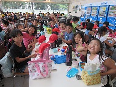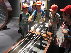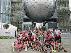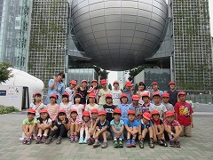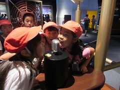 午前中は、館内の常設展示を見学し、メモを取りました。巨大竜巻を発生させる装置に、口を開けて見入ったり、名古屋の街を模したジオラマを、上の階段から見下ろして「○○みたい!」と感動の声をあげたりしました。昼食は、残念ながら雨が降ってきてしまったので室内になりましたが、クラス全員が近くに座り、にぎやかな食事になりました。午後はプラネタリウムを見ました。甚目寺では見られない満天の星や、宇宙の果てまであっという間に移動して地球の方を見るなど、プラネタリウムならではの体験をすることができました。
