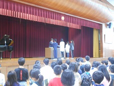 後期始まりの式のあとに、児童会役員認証・引き継ぎ式が行われ、