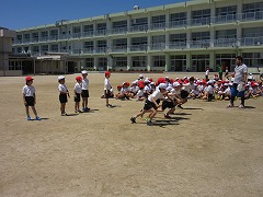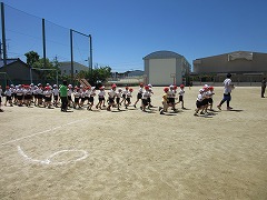 今日は雲一つない快晴です。運動場の水たまりもなくなり、待ちに待ったスポーツフェスティバルの運動場練習の1回目がありました。