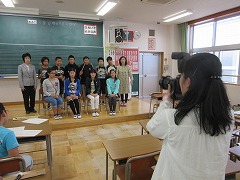 各クラブで6年生が集まり、撮影します。午前中にも、クラス写真や学年集合写真でお世話になった写真屋の方が指示を出していました。「ちょっと右に寄って。」「襟が曲がっている人がいます。」写真屋さんを誘導する先生からも声が聞こえます。「その顔が一生残るんだよ!」遊んでいた子も前を見て、はいポーズ♪「う~ん、(表情が)固いなあ・・・。」と写真屋さん。笑顔を作ってもう1回パチリ!欠席者がいなかったクラブは全て取り終えました。