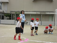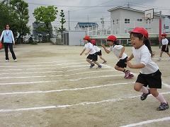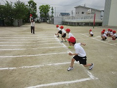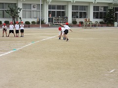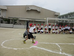 ソフトボール投げをやるのは初めて、という子が多いと思います。さて、どのように投げるのかと見ていると、きちんとしたフォームで投げる子に交じって、①利き手と利き足が前に出ている子、②「気をつけ」の姿勢で投げる子、③ソフトボールを地面にたたきつける子などがいました。この子たちも、だんだんときれいなフォームで投げられるように成長していきます。ボールの投げ方も、体育でしっかり勉強していきましょうね。