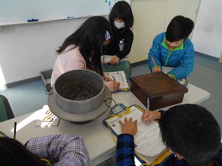 昔の手鏡やコタツなどの使い方などを講師の先生方に、ていねいに話していただき、子ども達にとってとても貴重な経験となりました。講師の先生方ありがとうございました。