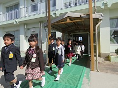 体育館へ、手をつないで向かいました。