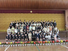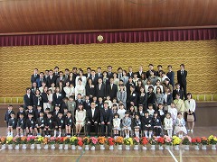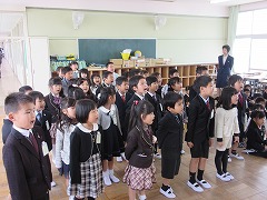 その後、教室へ戻って先生のお話を聞き、合唱の練習をしました。1年生を迎える会で歌う曲です。みんな大きな口を開けて元気に歌うことができました。最後に、おうちの方と一緒に学級写真を撮り、南小の1日目は終わりました。