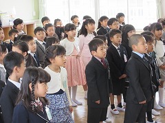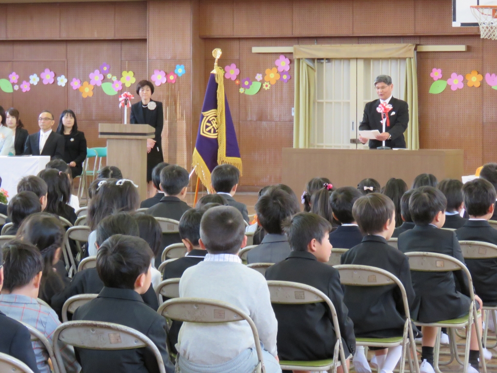 入学式で校長先生は、式辞で「ありがとうがあふれる学校にしましょう。」と話されました。教室に戻ったらありがとうを言ってくださいね、とも言われました。友だちにありがとうは言えたでしょうか?その他にも、教育長さんやPTA会長さんからもお祝いの言葉をいただき、1年生は「ありがとうございます。」とお礼を言い、入学式は無事に終わりました。