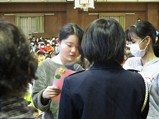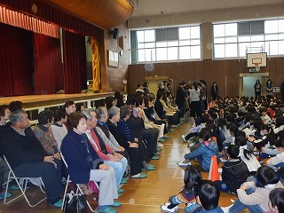 日頃から甚目寺南小学校を支えてくださっているみなさんを学校に招いて「ありがとう集会」を行いました。