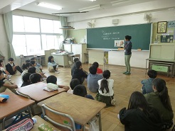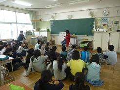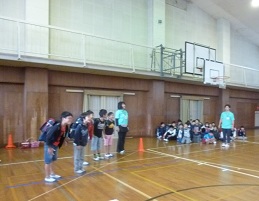 また、体育館では3年生が防犯教室に参加しました。登下校時、不審者に出会ってしまった場合にはどのようにしたらよいかを学びました。相手との距離のとり方、防犯ブザーを使う場面、「助けて」と大声を出すこと、たくさんのことを教えていただきました。