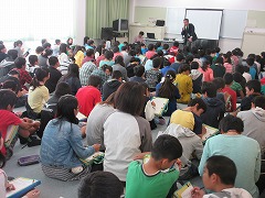 6年生は、先生の話を聞きながらプリントを書いていきました。医師として当時の誤った知識に基づく偏見に負けず、患者のためを思って行動した小笠原先生。自分が同じ医師の立場だったら、小笠原先生のように行動できだろうか?そんなことを考えさせられる学習会でした。『差別が本当にひどいと思いました』、『今日のことを忘れないでいたいです』という感想のように、子どもたちにとって、大きな学びのある時間になったようです。