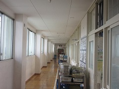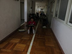 この廊下を描きます。 上手な子がたくさんいました。 1時間、静かに描きました。
