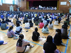 3年生から5年生の400名近い児童の前で演説するのはとても緊張したことと思います。しかし、どの立候補者も「あいさつのできる学校にしたい」「楽しい学校にしたい」「きれいな学校にしたい」「仲の良い学校にしたい」などの目標とその理由、目標を達成するための手段などについてしっかりと演説していました。