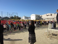 元気よくあいさつで始まりです。 選手にみんなから拍手!