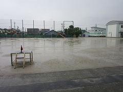 午前中は何とか持ちこたえた天気も、午後になると本降りの雨になりました。5、6時間目に予定されていた6年生の水泳は、残念ながら中止です。代わりに学年を2つに分け、体操服に着替えて体育館に入り、1時間ずつ集団運動をしました。