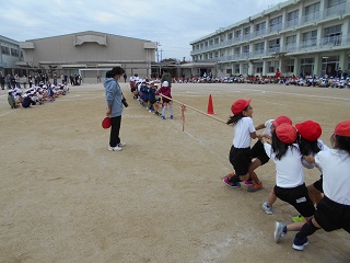 本日、雨天で延びていた中学年のスポーツフェスティバルが行われました。