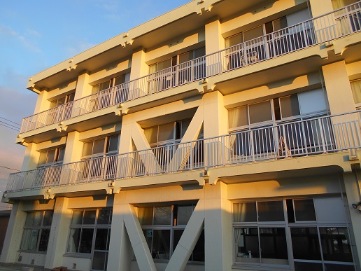 写真は登校前の校舎です。学校では教室の天窓や廊下の窓を常に20cm程度開けて常時換気を行っています。