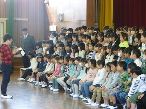 朝礼のあと、「対面式(1年生を迎える会)」が行われました。