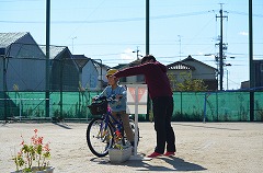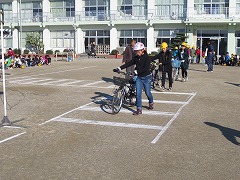 3年生、5年生は、運動場でのワンポイントトレーニングです。左右の確認、後方確認など、安全に自転車に乗るためには何を意識すればいいのかを考えながら練習しました。『ふだんは一時停止をあまり気にしなかったので、これからは気をつけたいです。』というような振り返りもできました。