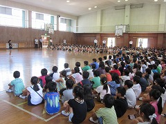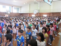夏休みが終わり、今日は2学期の始業式です。南小には子どもたちのにぎやかな声が戻ってきました。さて、始業式は、準備ができたクラスから式のある体育館へ入場してくるのですが、一番にやってきた4-4から始まり、最後のクラスまでとても静かに集合、整列できました。ちょっと暑さを感じる体育館でしたが、式にふさわしいとても落ち着いた雰囲気の始業式になりました。