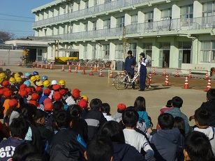 本日、交通安全教室が行われました。はじめに、全体で警察の方から正しい自転車の乗り方についてのお話を聞きました。その後は、学年ごとにビデオを試聴したり、実際に自転車に乗ったりして、交通安全に対する意識を高めることができました。 本日はたくさんの方々にお手伝いしていただきました。本当にありがとうございました。