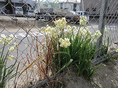 東門のフェンス際。水仙が咲き、3月に入ったことを実感できますね。