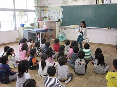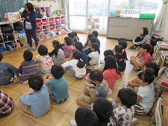 最近は日本にも定着した感がある今月のハロウィンです。読み聞かせのお母さんたちは、いつも季節にあったお話を選んでくださいます。今日は2つのクラスでハロウィンの絵本を読んでくださいました。