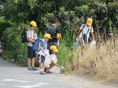 今日は『地域ピカピカ大作戦』の日です。第1回の出校日に合わせ、計画されました。集合場所や通学路のゴミを拾い、自分たちの地域をピカピカにきれいにしました。