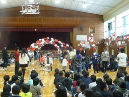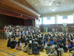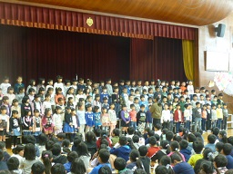 2年生以上の児童は、1年生のために校歌をうたいました。また、1年生からはお礼のことばと歌をもらいました。