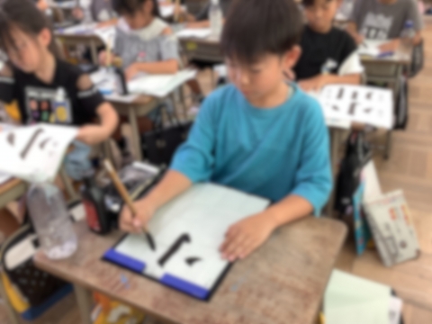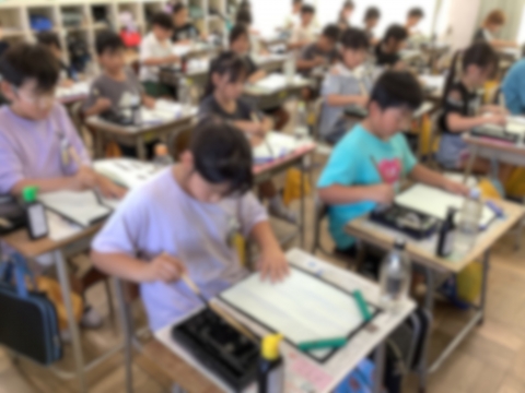3年生は、書写コンクールの清書を書きました。『小川』という字を丁寧に集中して書いていました。