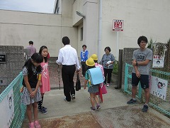 24日の朝に、PTAのお父さん、お母さんと、生活委員会によるあいさつ運動が行われました。何だか恥ずかしそうに、お母さんたちの前を通り過ぎていく子どもたち。大人がいると恥ずかしいのでしょうか?でも、そんなことを考えていてはいけません。あいさつは、誰に対しても大きな声でしたいものです。いつも、元気よく「おはようございます!」と言えるようにしましょうね。