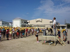 今日は、校長先生のお話の始めにお褒めの言葉がありました。それは集合についてです。先週の朝礼に引き続き、本当に早く集まることができました。そして、8時25分には朝礼が始まっていたのです。今回のように早く集まって行動することが、今後の行動に生きてくる、とも言われました。きびきび動ける南小を嬉しく思います。