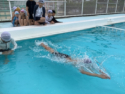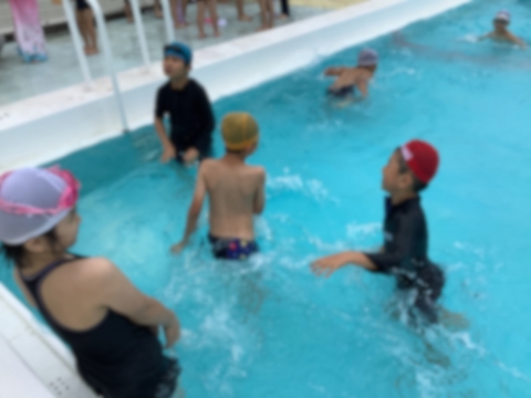 みどりの児童がプールに入りました。水慣れしたり、どれぐらい泳げるのか検定したりしていました。