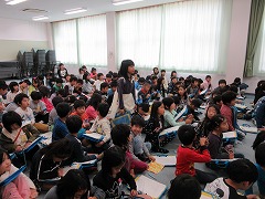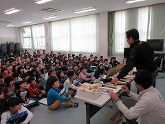 3年生は、社会であま市の農業や産業などについて学習しています。さらに、総合学習では、教科書に載っていないあま市の特産物についての学びを深めます。13日は、はけについてのお話を聞くため、はけの生産に携わっているお二人にお越しいただきました。