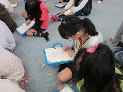 いろんな固さの繊維に触りました。
