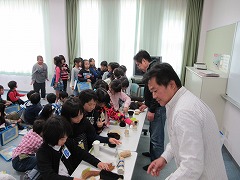 はけについて、たくさんのことを教えていただきました。あま市にはけが伝わったのは約150年前で、最盛期には大人の5人に1人がはけ生産に関わっていたこと、日本と海外のはけは、はしとフォークの違いのように持ち手の部分が違い、それぞれ「すじかい刷毛」「平刷毛」と呼ばれることなどを知りました。また、はけに使われる馬や山羊の毛、人毛、植物繊維や人工繊維などを触らせていただきました。甚目寺地区の伝統産業の1つ、はけについてたくさん知ることができました。