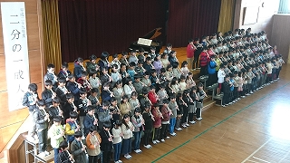 1日授業参観に合わせて4年生が二分の一成人式を行いました。二分の一成人式は、20歳の半分にあたる10歳を区切りに、自分の夢や将来の姿を意識し、実現に向け、これからの生活に生かしていくことを目的としています。歌・呼びかけ・リコーダー演奏などを通じて、これからの1歩に向けた決意を示してくれました。また会場には一人一人が作成した想いのこもったドリームマップが掲示されました。それぞれが思い描く将来の夢が実現できることを願っています。